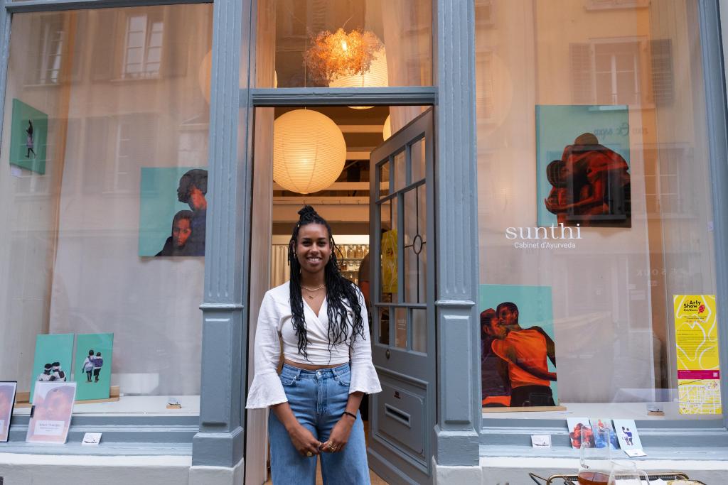 Der Shop-Front-Preis 2025 wurde an Aimee Mandjila verliehen, die die meisten Stimmen vom Publikum, der Jury und dem Arty-Show-Komitee erhalten hat. Mit dem Werk „Begleitest du mich nach Hause?“ lädt uns die Künstlerin dazu ein, über die Bedeutung von Solidarität und Begleitung nachzudenken. Das Projekt wurde bei Sunthi, einer Ayurveda-Praxis, ausgestellt.
